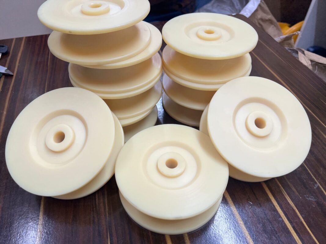 We stock Cast Nylon rods and sheets in thicknesses ranging from 8 mm to 150 mm, with rod diameters up to 300 mm. Using advanced CNC milling, turning, and routing systems, Hason Industries can machine parts up to 2,500 mm in length and 1,500 mm in width, depending on client requirements. With excellent dimensional stability, Cast Nylon supports tight tolerances even in large-format designs. Our machining processes include precision boring, turning, grooving, drilling, and surface profiling to ensure smooth operation in moving assemblies.